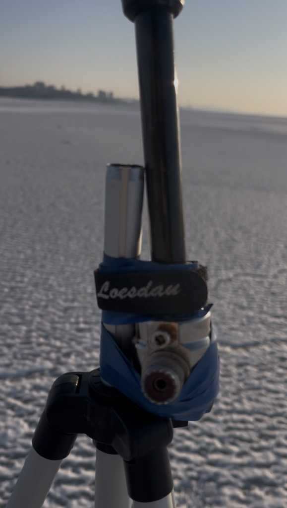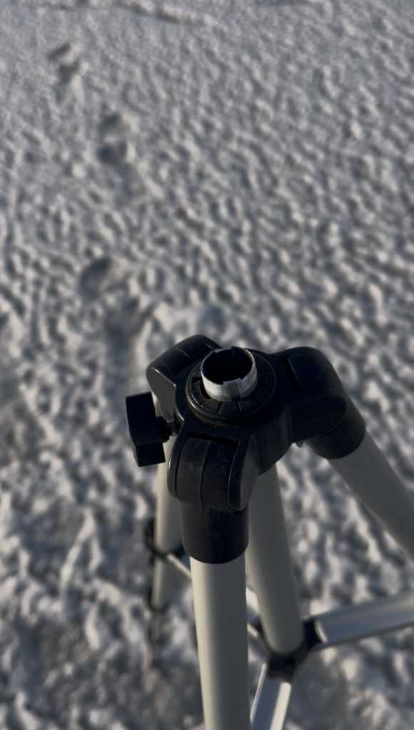 И тут случилась первая неурядица, в процессе подготовке я схватил штатив (он в матерчатом чехле), но не проверил наличие крепежного набалдашника, который благополучно остался лежать дома. По итогу штатив установлен, а антенну на него не закрепить.