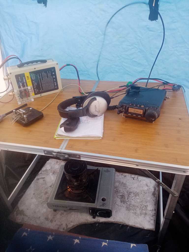 Развернул позицию, настроился, послушал эфир, сделал пару пробных CQ, стало как-то прохладно, ну конечно же, Мороз гуляет в нашей местности знатно в этом сезоне. Огонь развести не получилось, сдохла зажигалка, купленная ранее в светофоре.
