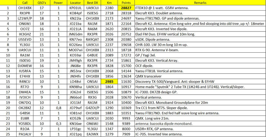 Подведены итоги игры 1 ватт! Сообщение от Петера OO7Z: