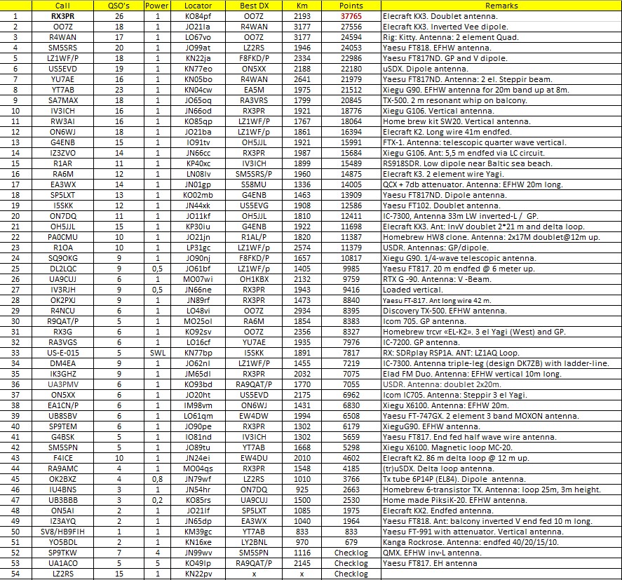 The station with the lowest power was UB3BBB, Andrei, with barely 200 milliwatt.