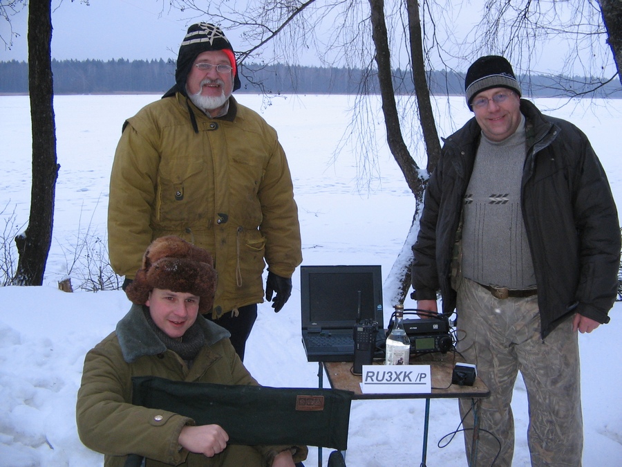 ..мы тоже решили испечь в этом году "первый блин" (который получился очень даже не комом!)  , и впервые выехали на "МОРОЗ". Кинули клич, собралась группа из 4х человек: Андрей RU3XK, Александр UA3XBT, Владимир RW3XR и Максим UA3XFP.. Место определили на берегу озера Верхнее, в 5км от Людинова, KG-18. Всё было просто супер!!!... Масса положительных эмоций, замечательная природа, свежий воздух и хорошее прохождение на КВ!. Из аппаратуры брали Icom IC-703, питался от АКБ, прикуривателя авто. Антенна вертикал на 20, диполь и дельта на 40м. По неопытности хотели использовать ноутбук для работы в PSK31, но мороз сделал свое дело - тачпад замерз и не работал совершенно (как впрочем и шариковая ручка  ) ! Поэтому работали в основном CW и фиксировали всё на бумаге карандашиком  . Активность в тесте была высокая. Мало станций было в SSB, да и телефонные QRP участки были просто "задавлены" киловаттниками..