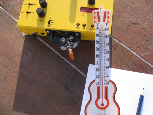 В итоге домой (в Благовещенск) добрались ближе к 14 местного времени. А тест – в 16!!! Пока «сдал» машину (машину просил перегнать товарищ, а я и мои коллеги были в командировке, вот и совместили «служебное с личным»), договорился, кто меня до QTH подбросит (недалеко, 25 км. «на север»), вот и приехал в семью почти к 14:30. Бегом готовить «полевой шек». Благо – далеко ходить не надо. Всё под рукой. Притащил старый стол, поставил во дворе. Старое «крутящееся» кресло, стоявшее на веранде. Любимый PFR-3 с встроенным Li-ION аккумулятором на 4,7 а/ч, кусок кабеля RJ-58A с «крокодилами» на «дальнем» конце для подключения к стоящей во дворе антенне Hustler-5BTV. Не забыть карандаш и бумагу… Бегом все сфотографировать, уговорить жену запечатлеть и меня. Уф! Вроде успел. Правда фото еще без наушников. Кое-как нашел свои любимые «Соньки». Вот что значит – спешка! :)