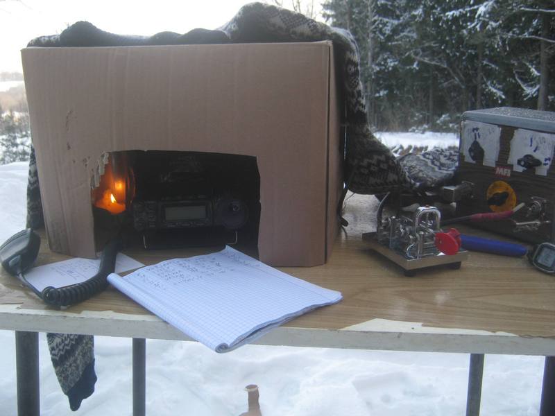 Шэк развернули в открытой беседке, и развлекались в Морозе с трансивером КХ3, пытаемым питаемым встроенными пальчиковыми аккумуляторами.