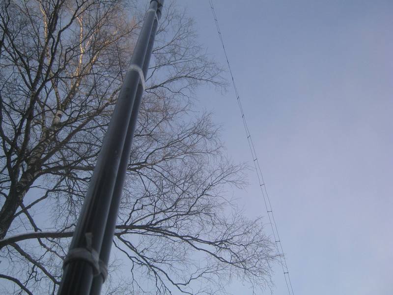 Прибыли на дачу (в черте города), на 12-метровой пластиковой мачте подняли 40-ный диполь (InvV.), запитаный симметричной линией, и обнаружили полное несовпадение резонансов, по сравнению с тем, что было на мачте высотой 18 метров.