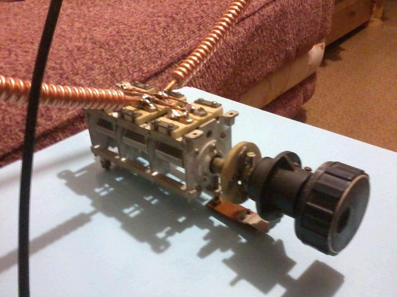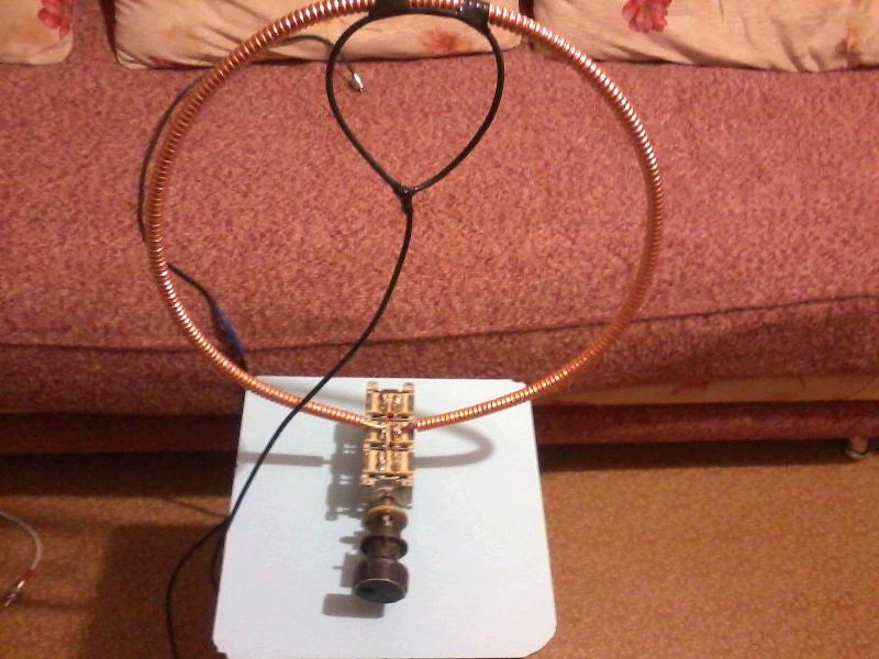 изготовлено было 2 варианта - с "бубликом" диаметром 60см (примерно 10-50МГц) с воздушным кпе и с "бубликом" диаметром 100см (5-30МГц) с вакуумным кпе. кпе должен быть без трущихся контактов, типа бабочка а еще лучше – переменная емкость в стеклянном вакуумном "пузыре".