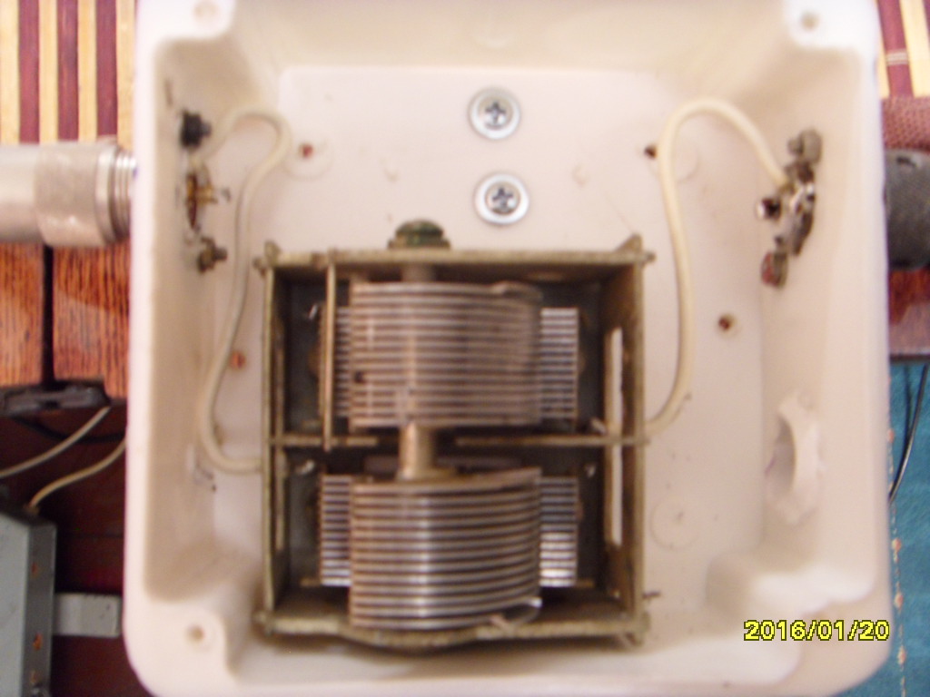 Думаю сделать переключение, чтобы дополнительный конденсатор включался параллельно для увеличения ёмкости (для смещения диапазонов вниз по частоте и появлению 40 м) или вовсе исключался из работы при необходимости. Диапазон 10 м появляется, если дополнительный и основной конденсаторы полностью выведены, т.е. суммарная ёмкость минимальна - 3 пФ. Если же сделать ещё так, чтобы дополнительный конденсатор подключался параллельно к основному (их ёмкости при этом будут на максимуме), то, по идее, должен появиться диапазон 80 м, но там КПД, естественно, будет никакой, но послушать, думаю, можно будет.