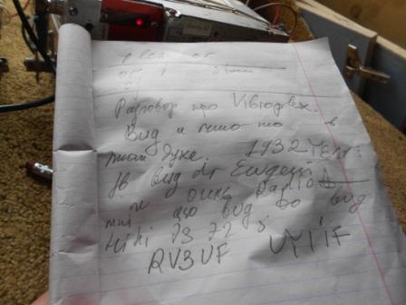 SWL QSO UY1IF- RV3UF. Рапорт Алексею 559, Евгения, работающего на BUG ключе вообще не было слышно.