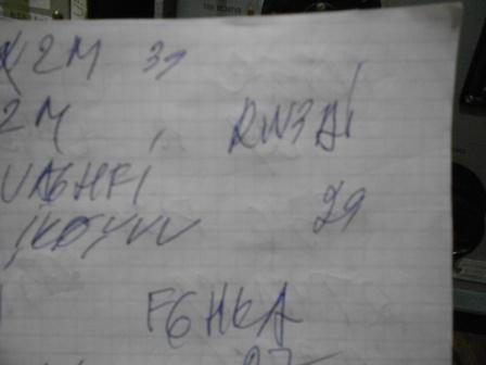 Сегодня суббота - в 12мск прошло,как обычно,QRP рандеву на 14мГц. Провел 3 с половиной qso -OM6TC,F5DM и ON6KZ/P. ( антенна у Питера, ON6KZ/P была ALEXLOOP и принимал я его временами до 569.) Четвертое -так и не окончил, вернее -не начал. То ли это был M3WCK/P, то ли это был -DM3... Сигнал,то всплывал, то пропадал на десятки секунд. Рапортами обменялись -оба по 339, но кто это был так и не знаю!