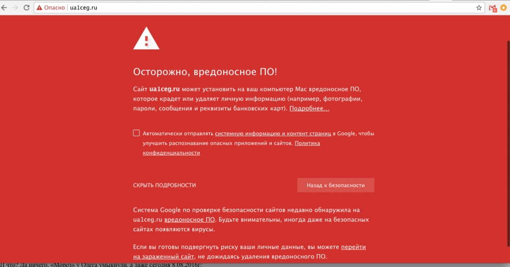 Поскольку многие браузеры очень сильно ругаются на сайт ua1ceg,