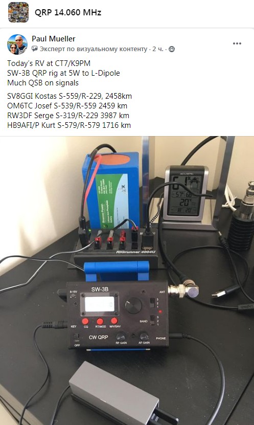 Репортаж о "рандеву" от нашего одноклубника Пола CT7/K9PM из FB группы "QRP 14.060 MHz" (скриншот)