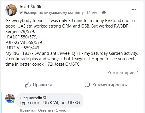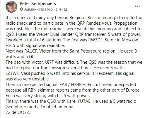 Репортаж Петера OO7Z о субботнем "рандеву" опубликован в группе "QRP 14.060 MHz" в Фейсбуке