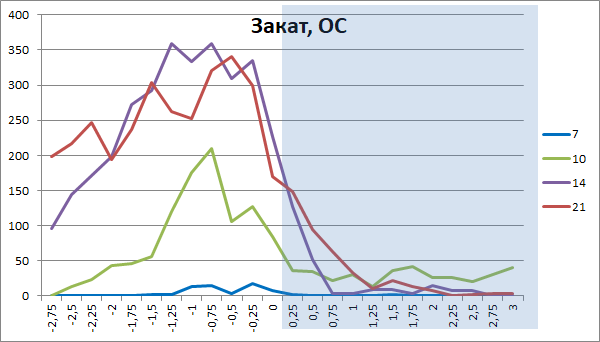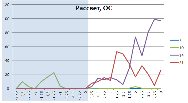 И смотрим отдельно методом наложенных эпох рассвет и закат: