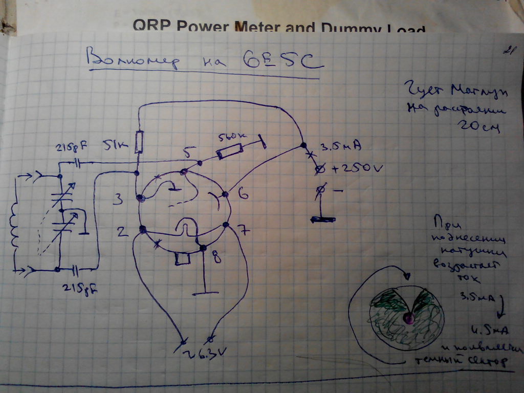 А сейчас смакетировал волномер на лампе с встроенным индикатором, очень люблю так называемую "функциональную электронику", в техникуме даже такой курс был. Макет сделан по мотивам, на лампе 6Е5С "зеленый глаз"