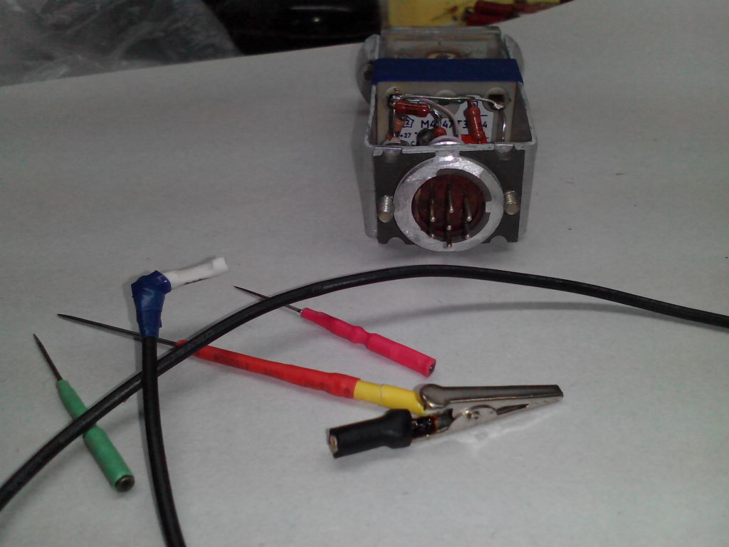 Основа - разъем типа РМ, спилена юбка, штырьки 1 мм диаметром. Щупы и крокодил не потеряются, втыкаются просто в разъем для хранения.
