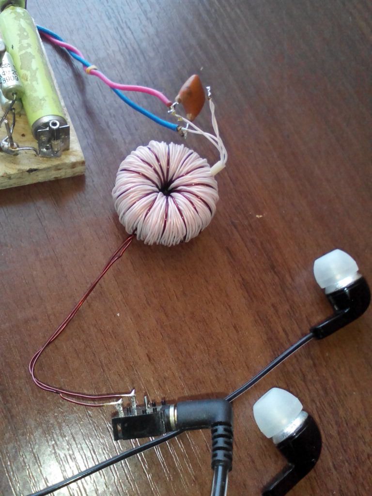 У колечек надо экспериментально измерить проницаемость намотав несколько витков и воткнув в измеритель индуктивности. Но даже с высокой проницаемостью надо будет мотать сотни три витков. По опыту скажу - это совсем не сложно, если кольцо не очень маленькое. Потом первичку настраиваем в резонанс (я настраивал примерно на 1 кгц). А вт вторичку можно потом подобрать - в одном из опытов я дошел до соотношения витков 1к 35, после чего транс стал слишком узкополосным. Но, еще раз повторю, сопротивление такого трансформатора на звуковой частоте получилось около 50 ком, как раз для самодельного унч на двух-трех транзисторах для ППП. И потом наушнички подобрать по отдаче - у меня большие низкоомные лопухи оказались заметно тише маленьких затычек. У затычек суммарно сопротивление было 72 ома.