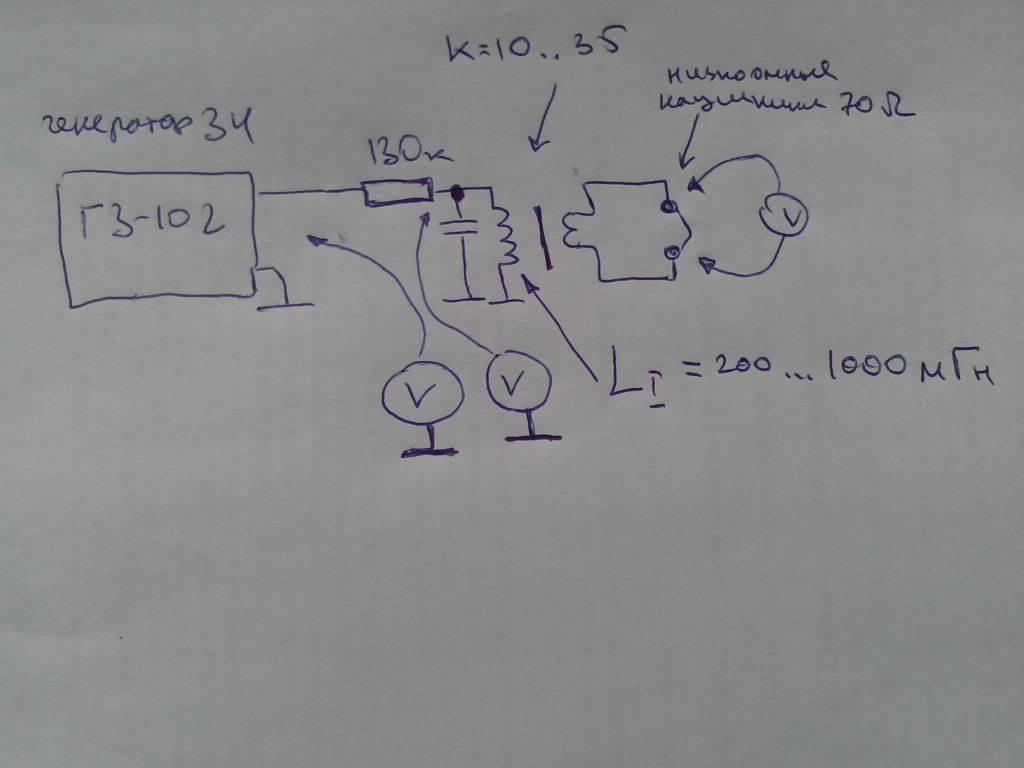 Тестер хорошо меряет звуковое напряжение (на пределе ~200 мВ), контролировал осциллографом. Я оценил сопротивление системы транс-наушники на резонансной частоте (по соотношению напряжений на резисторе и первичке) и полосу пропускания по уровню 2. А также оценивал минимально различимый сигнал - около 2 мВ с генератора. Так же через резистор 130 кОм подключал и высокоомные наушники для сравнения. Выходные витки подбирал (сматывал) пока росло выходное напряжение на наушниках, для этих моих затычек оптимальным соотношение первички и вторички получилось примерно 1 к 30 - приятная на слух узкая полоса около 200 Гц
