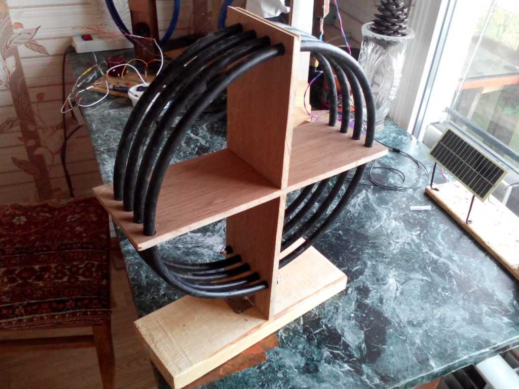Добротность еще не измерил, но резонанс очень острый, на приемники влияет на расстоянии. Сделана основа из кусочков ламината, вкручивать кабель в каркас то еще приключение