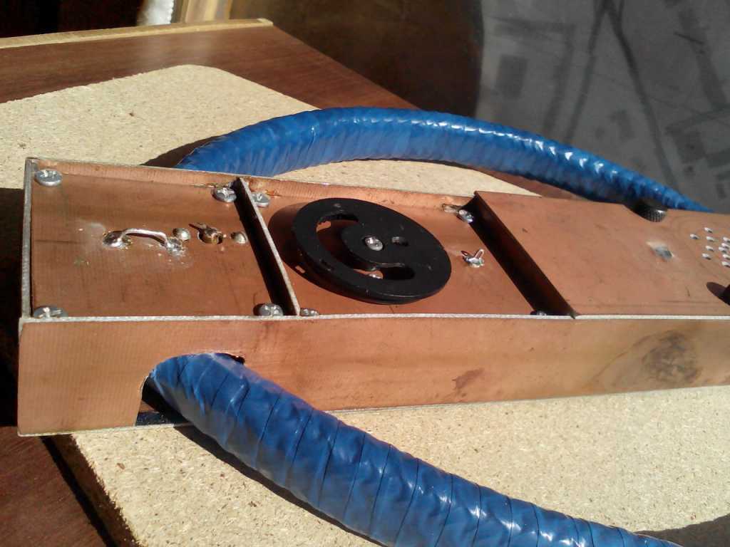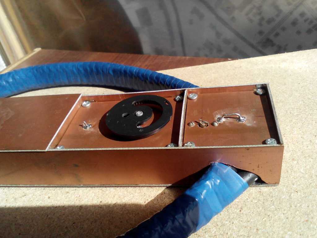 Хочу давно сделать походный приёмник на 20 м с ГПД. Склоняюсь к жесткой антенне-рамке в экране. Пока в раздумьях, применять ли коаксиал или закрепить провод внутри корпуса.