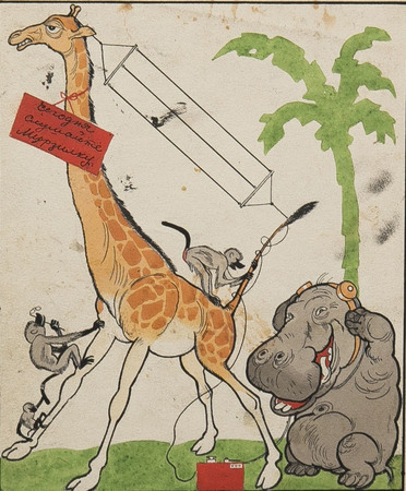 "Сегодня слушайте Мурзилку. 1920-е." , иллюстратор Леман Николай Адольфович. Антенна на жирафе.