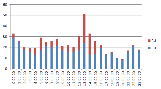 Видно, что пик около 13-14 UTC - это вклад именно российских скиммеров (4-го и 9-го районов).