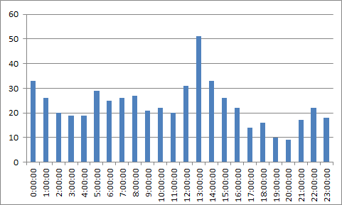 Ну, в принципе по гистограмме видно, что в 17...20 UTC самое мертвое время. В более летний период солнышко позже заходило. Посмотрим еще, помониторим.