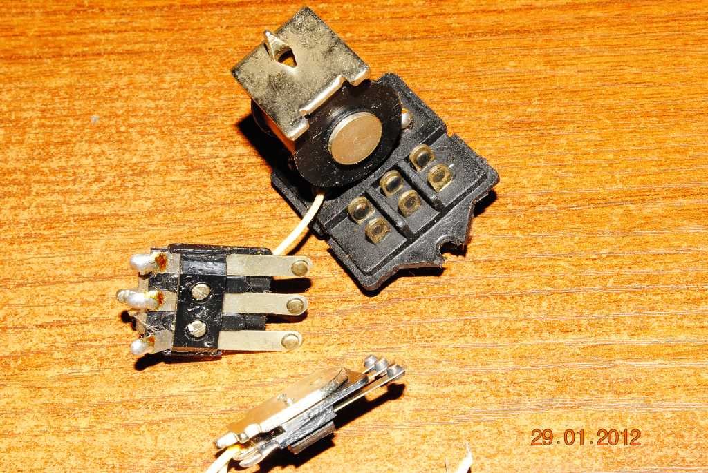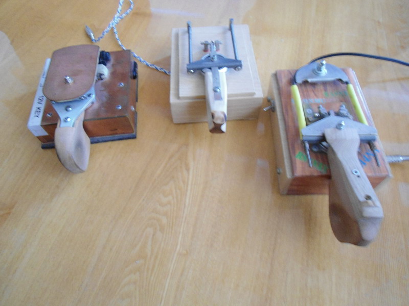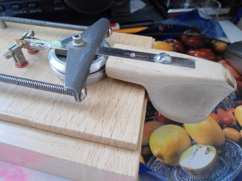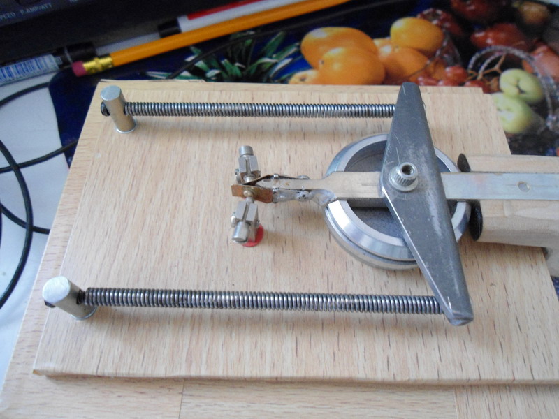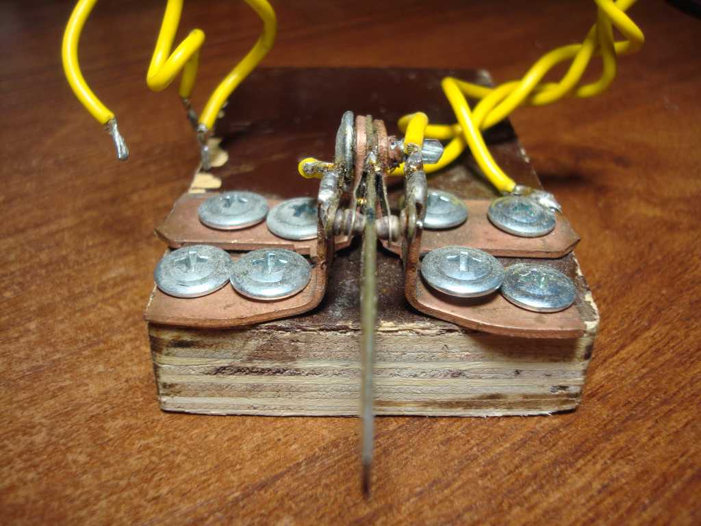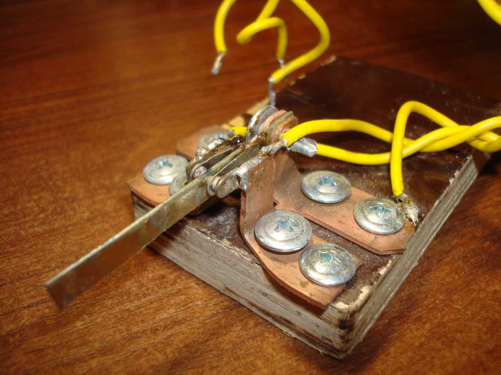 Эту конструкцию использую с 2000 года. Основание, отец на заводе выточил. Контакты из какой-то релюхи. Недавно сломался "рычажок", был заменян на пилку для ногтей.