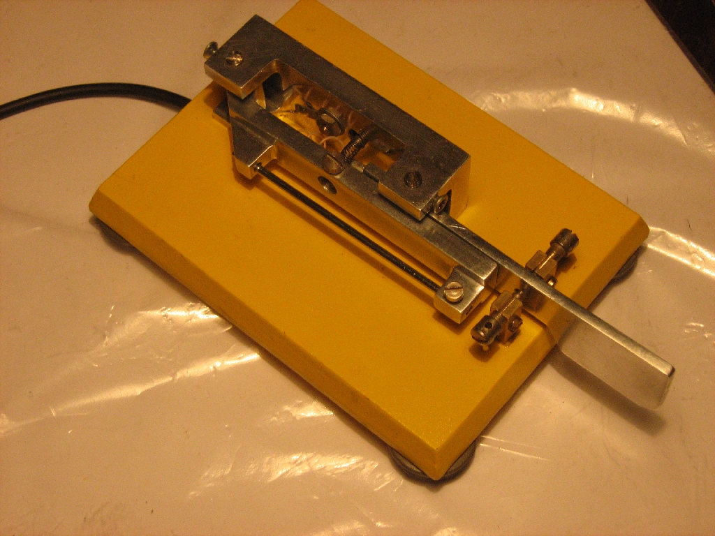 Сережа, не думаю, что причина была именно там, где ее устраняют с помощью титана  . Такой конструкции манипуляторов(одно и двухлопастных) в нашем ДОСААФ-е было заказано на заводе(чтоб не в Харькове!) несколько больших картонных коробок(а я после этого искал ХОТЬ ОДИН, фигу)! Заказывали для скоростников. На текстолитовых коричневых основаниях, легенькие(как спецом для планшета), поэтому их все клеили на толстый слой пластилина  . Хорошая конструкция к стати, жестковато, но без отскока. Так вот, контакт пропадал не между контактами точка-тире и веслом, а между веслом и игольчатыми "подшипниками" основания(массой). Кто поумнее был, то сразу разбирали(с двухрычажником надо было хорошо потрахаться) и после зачистки обильно смазывали эти накерненные места под конусными винтами графитовым циатимом. Но самое радикальное средство - это "язычок" от реле РП, из которых многие делают сам манипулятор. Он выламывается нафиг, разламывается вдоль и потом подгибают две половинки так, чтобы при насаживании на весло(как бы перевернутой буквой "П") они были как раз напротив контактов(от того же реле  . Внизу их спаивают после этого и усаживают на нужное место весла(упругая медь, и так держится, но обычно под нее эпоксидкой еще капали). Ессно внизу вдоль весла пускается и прихватывается той же эпоксидкой тонкий МГТФ, припаянный к этой П-образной пластинке с контактами. Второй конец даже с "массой" ключа не соединяли, а сразу на экран(массу)соединительного кабеля. Такая доработка лечит "контактную болезнь" навсегда. Вместо эпоксидки сейчас можно пару капель "суперклея" капнуть. Можно даже приклепать эту полоску с контактами, но на коллективке до самого разгрома(лет 10) был привинчен такого типа двухрычажник с обжатой и закрепленной эпоксидкой полоской и работал бы вечно, если б не украли вместе со столом и всей аппаратурой...