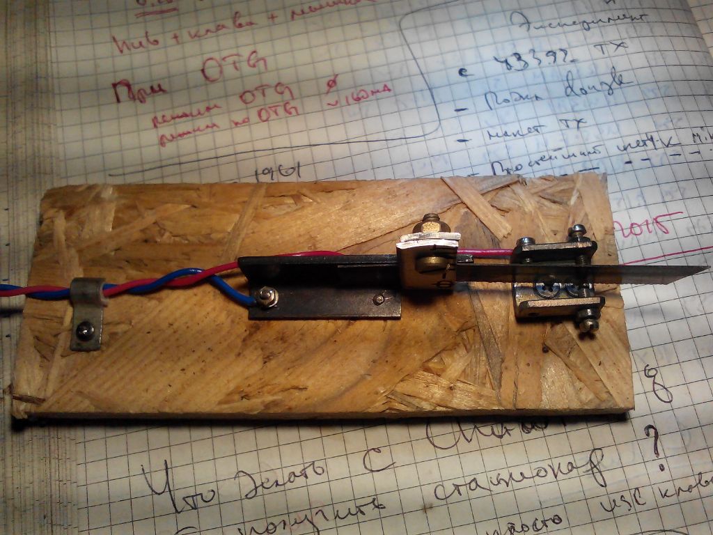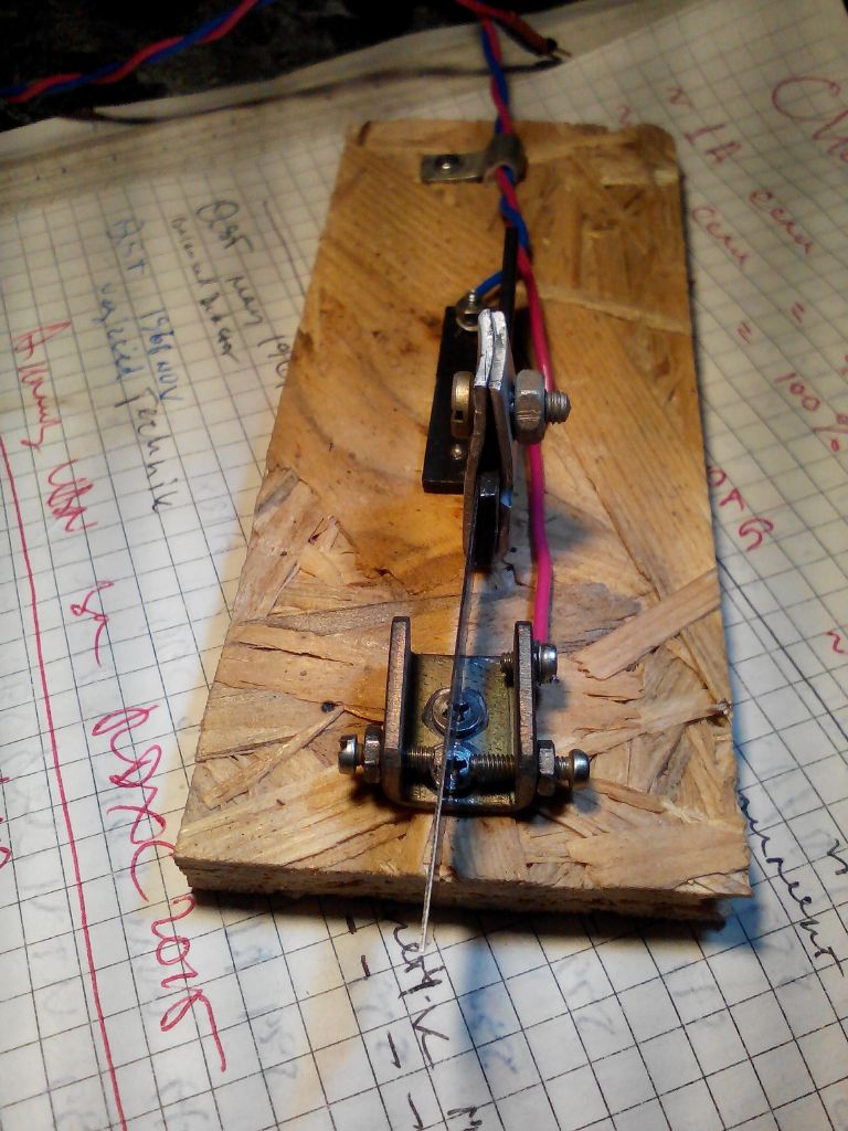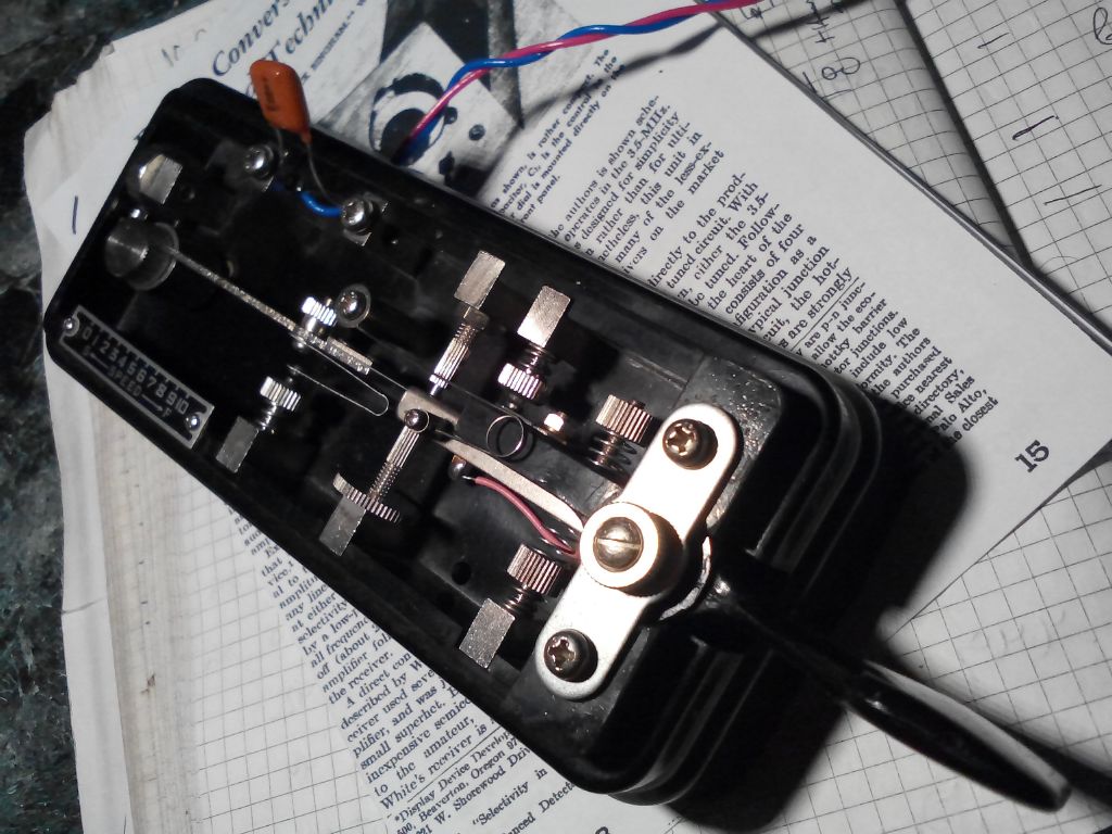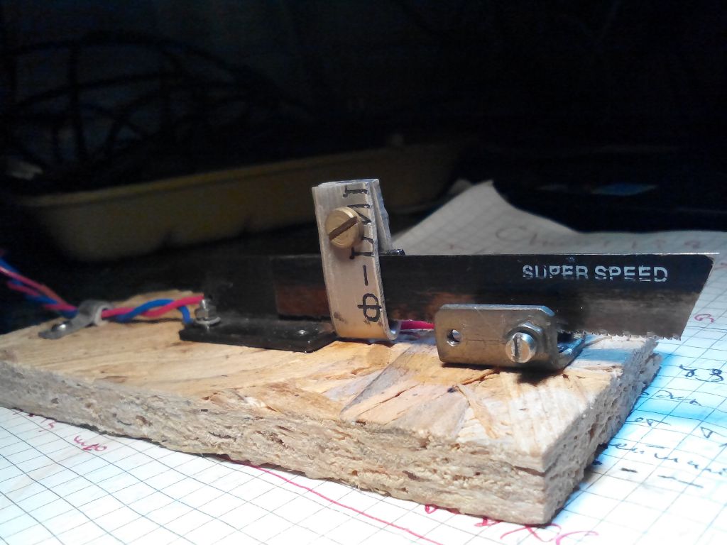 Продолжаю мекеникал экспириенс, так сказать - сваял "пилу" из кусков разных металлов, ну и попробовал бряцать на ней, прикрутив звуковую пищалку для начала. Но вечером не утерпел и вышел в эфир в надежде, что скиммерам удастся прочитать сику, сику и позывной, и они таки прочитали. Но кроме машин сигнал прочитал также и DK7MC. Фриц любезно снизил скорость и позвал меня медленно, но долго я "пилить" не смог и подробно ему отвечал уже на обычном электронном ключе.
