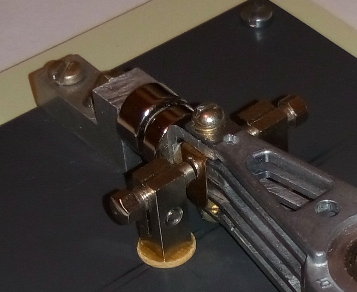 Евгений, приветствую. Да, всё верно, контакты от поляризованного реле согнуты буквой Г и просверлены отверстия для крепления вертикальным винтом на конце рычага ...