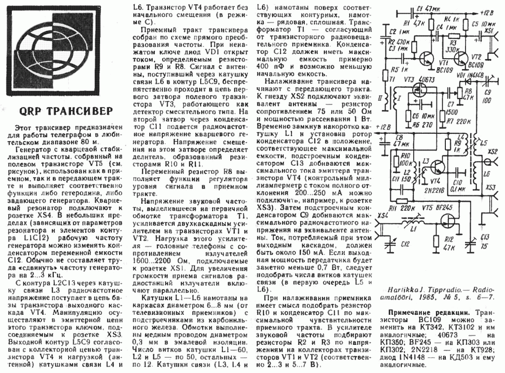 Вторым приемником прямого преобразования была конструкция из "Юного техника" №6 1990 год, 40-20 метров, правда не Полякова. Не доделал, не настроил. Потом делал двухдиапазонный 80-40 метров, с переключением диапазонов тумблером. Границы укладывал, слушая несущую гетеродина на "Казахстан".