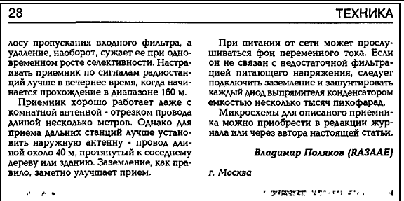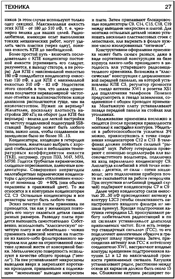 Этот приемник опубликован в КВ-журнале №2 за 1996 год.