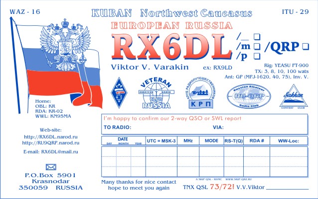 ex UK6AAK, RX9LD, RZ9LFY, RU9QRP/9, RU9QRP/6 и многие ещё организованные мной коллективные позывные.
