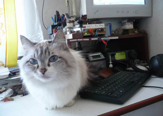Талисман Олега RW4NХ. Помошница и местное QRM! Не успокоится пока не устроится поудобнее! Порода: Невская Маскарадная. Мой добер "Барр...