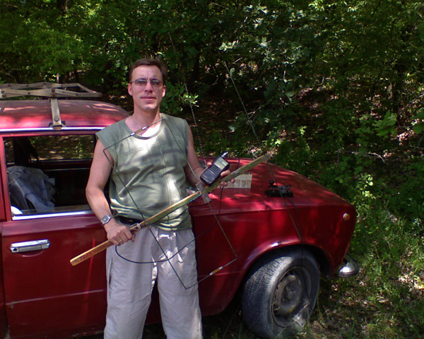 This is my photo of Portable QRP (SOTA - Summits On The Air) activity using Alinco DX-70T, 12V/7Ah battery, hand key, and Inv-Vee Link-Dipole (40/30/20m) , mounted on 5 m fishing rod. |