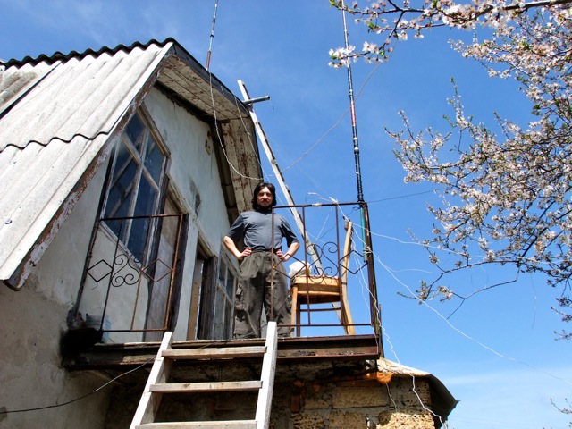 На ограждении балкона вертикал диапазонов 40 и 20м. UR5LAM в гостях...